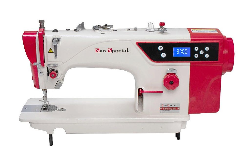 Motor Direct-Drive, com parada de agulha e elevação do calcador entre 5mm (alavanca manual) e 13 mm (joelheira).