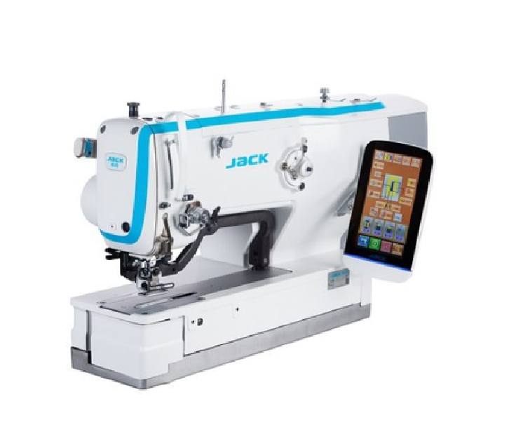 Equipada com um painel de programação com 31 casas de botão programadas e capacidade para até 500 moldes, além de uma porta USB para transferência de moldes. Tamanho da casa de botão: 120 mm. Para tecidos padrão.